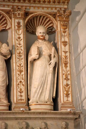 Agli inizi del 1500 Io scultore carrarese Giuliano Mancino, su commissione del sacerdote Giovanni Frioso, realizzò la stupenda ancona marmorea che si trova, nell’abside, sopra l’altare maggiore (l’opera fu completata nel 1515). Una delle statue che la compongono e quella di S. Tommaso, che è posta sullo stesso ripiano di quelle di Sant’Agata, Santa Caterina d’AIessandria e san Nicola di Bari. Insieme esse spalleggiano la statua centrale della Madonna della Consolazione e sono tutte collocate dentro delle nicchie, "fornite come le altre di catino a conchiglia". L’ancona è circondata da una maestosa cornice di stucco, a forma di drappeggio, che fu aggiunta al polittico nel secolo diciassettesimo.