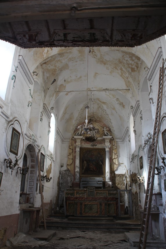 Già allora la chiesa versava nel più completo abbandono e degrado, i vetri rotti e le infiltrazioni di acqua dal tetto avevano rovinato gli stucchi, la cantoria in legno dipinto, le statue, l’acqua santiera e gli arredi del monumento sacro.